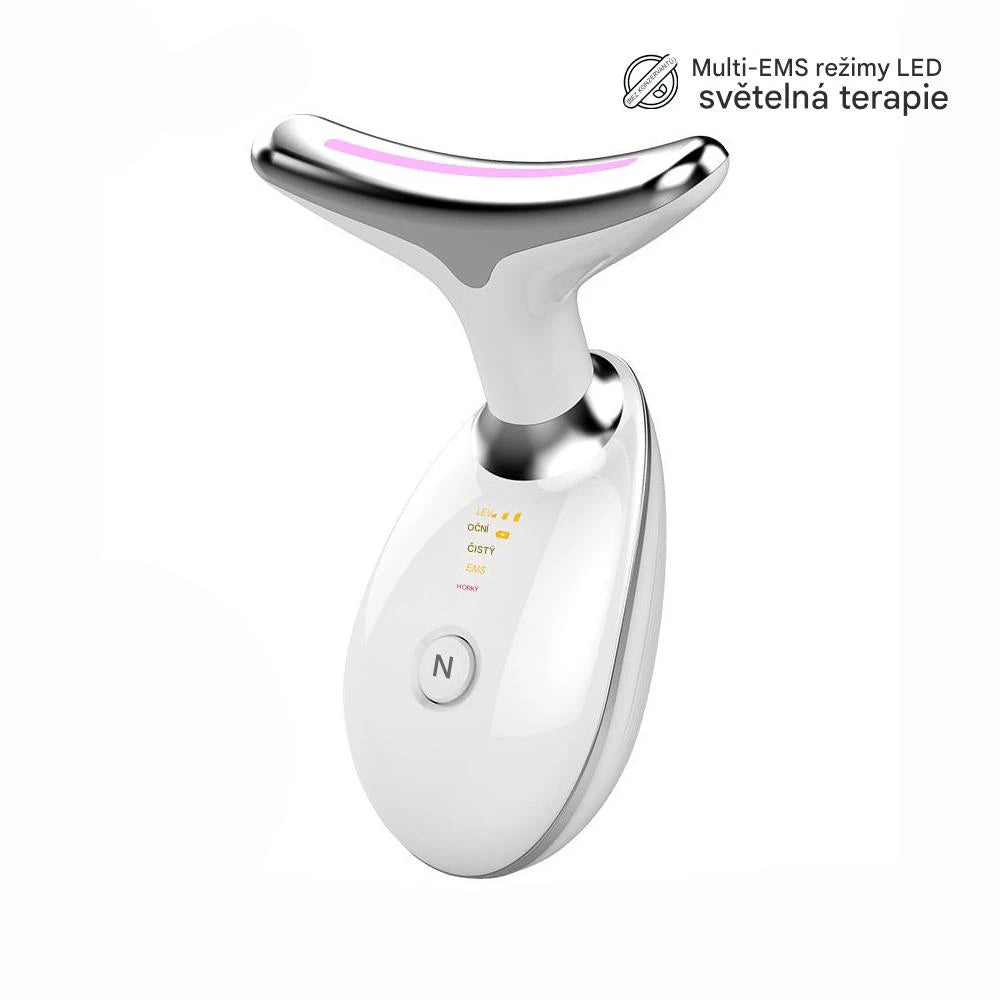 ELTHIVO MyoGlow kombinuje LED světelnou terapii (červená, modrá a jantarová) s jemnými mikrovibracemi a tepelnou terapií.