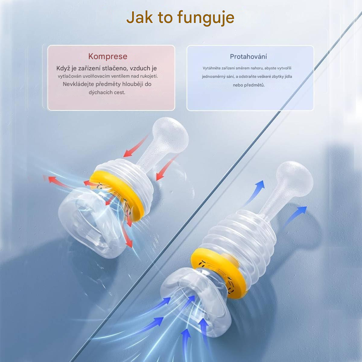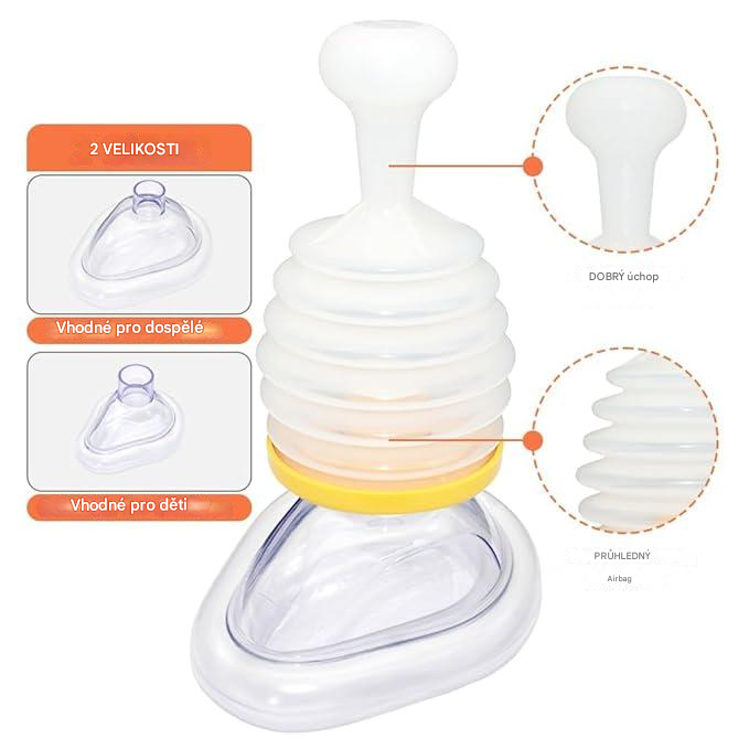 Tato záchranná maska vytváří silný podtlak, který rychle odstraní překážku z dýchacích cest. Je bezpečná a spolehlivá a výrazně zvyšuje šanci na přežití.