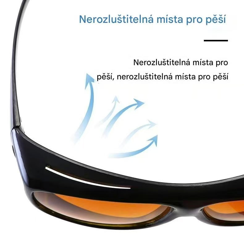 Tyto brýle proti oslnění mají jedinečný wrap-around styl. Velké přední čočky a vylepšené boční čočky poskytují široké pokrytí, minimalizují rušení oslnivým světlem ze všech směrů a rozšiřují zorné pole.